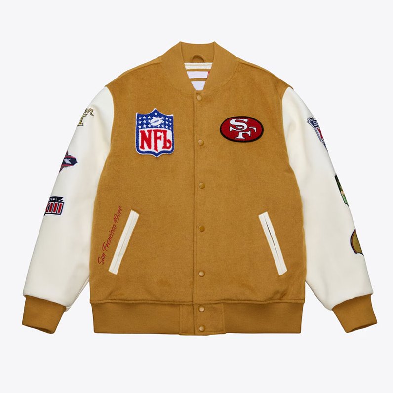 San Francisco 49ers Brown Cream Dusted Collection Varsity Full-Snap Jacket